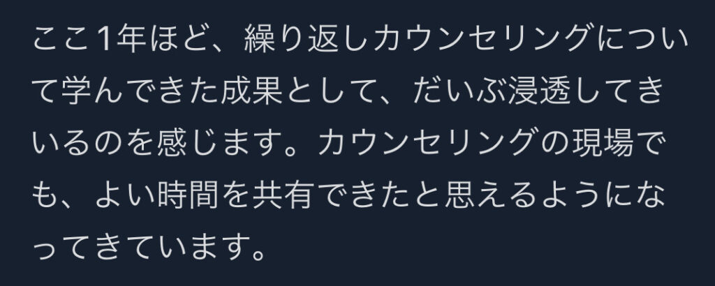 「実際にセッションを行なってみて分かったことは質問の仕方が尋問っぽくなってしまったことです。お互いに身構えてしまう感じになってしまいました。」
