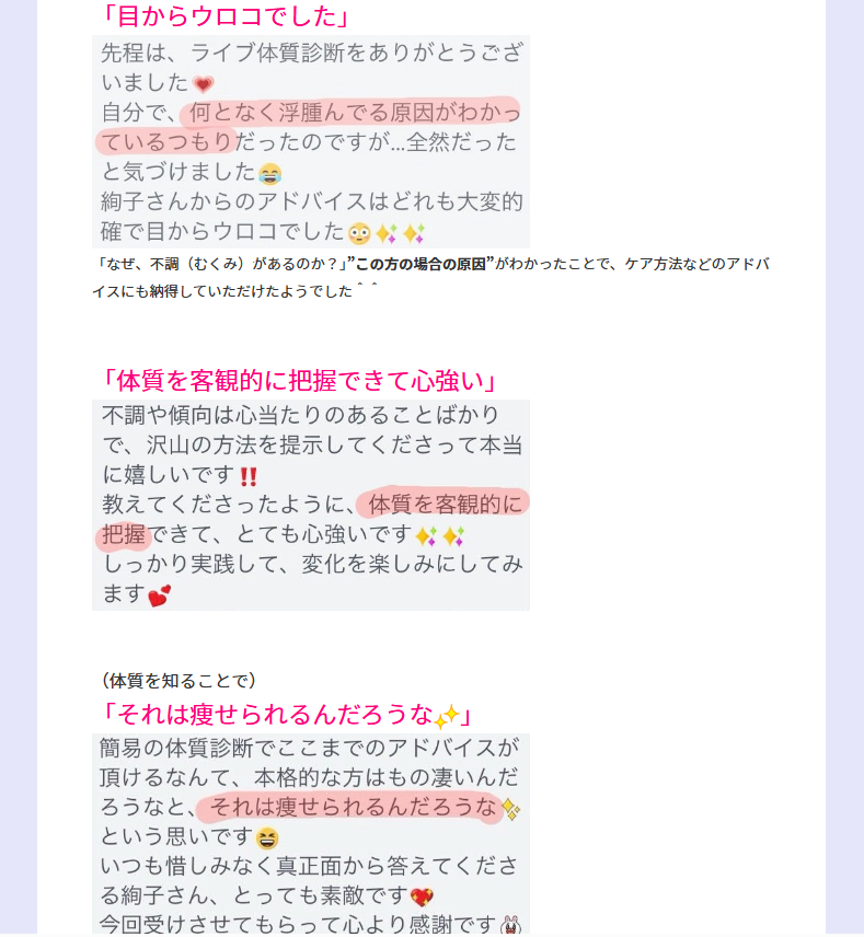 ご質問は、『体質診断の裏方サポート』の中で回答させていただきます。